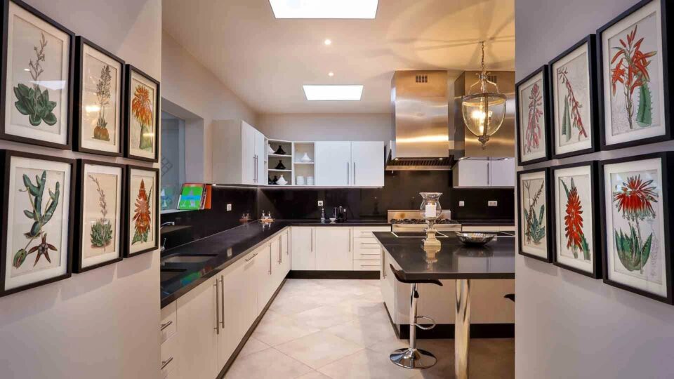 as marble and hardwood flooring and luxurious wall cladding. The villa